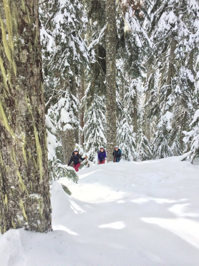 • Treat yourself with grace. Touring here is hard. Particularly for progressing skiers, but sticky snow conditions and thick foliage can test even the most proficient skiers. The occasional cussing, crying, or doubting whether you ever learned to ski in the first place are all really normal, especially at the beginning.