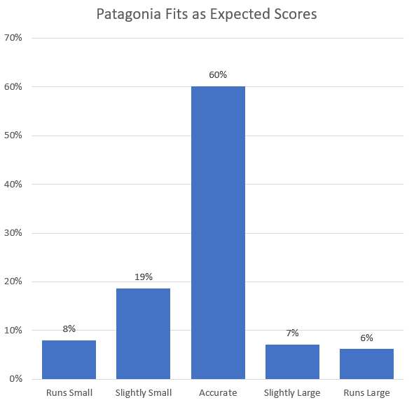 But I also have the data to refute this. Stores capture their customer fit perceptions during their review process. Patagonia’s aren’t accurate at the moment (they don’t total 100%), so I pulled them from REI. Apparently most women think they’re pretty spot on, and the ones that don’t actually think they skew small. If you’re going to drop speculative bullshit in my comments, you better believe I’m going to check your work.