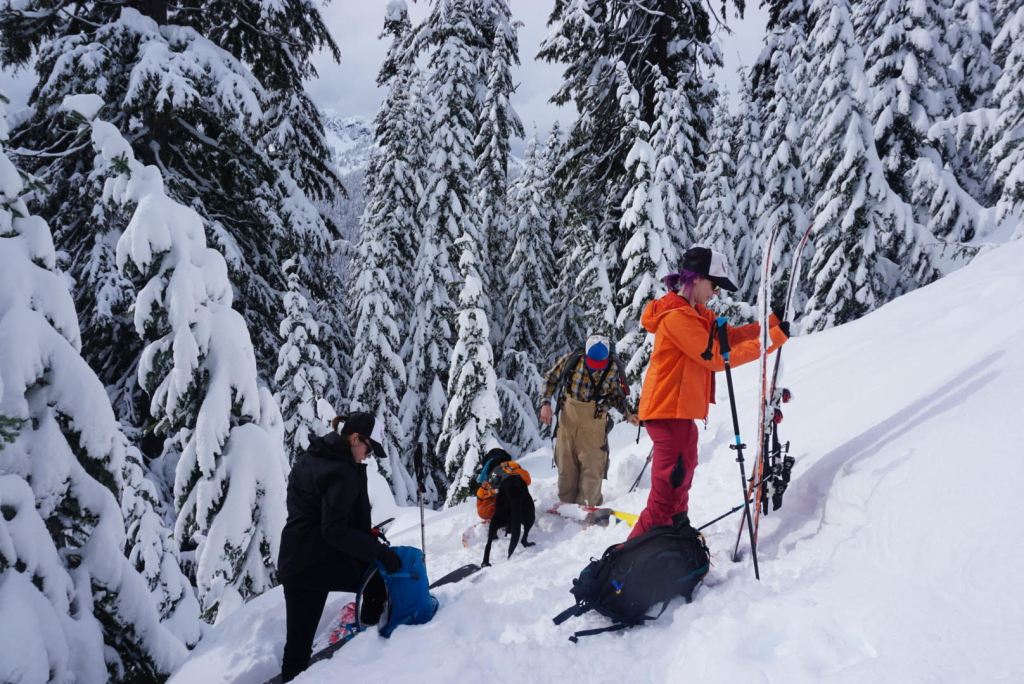 - Have a flexible schedule. I did most of my mentor tours with a woman who was willing to clear her calendar to get out and ski. My personal tours are never really solidified until the last minute. The official avalanche forecast doesn’t publish until 12 hours before most tours start. I might tentatively plan a tour based on the weather forecast and 48 hour outlook, only to have it ruled out the night before. I’ve had similar windows open after struggling to find partners for a bigger objective, and last season’s reservation system sometimes kept plans in limbo until the last minute. My friend had an understanding with friends and family that getting mentored experience was a big deal for her, and so she got a good number of days in. This also meant our tours never seemed to be in the best conditions. We got 3” of dust on crust, or 5” of wet, sloppy powder on ice when we were racing to get touring in before the precip turned to rain. But days with challenging conditions mean the most potential for mentoring. We’ll talk about how to keep your skins dry so they don’t get caked in snow, or how it’s important to keep your stuff secure in your bag when it’s icy.