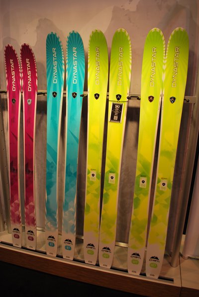 These are the narrower skis that are great in powder and ski shorter due to their tip and tail rocker: