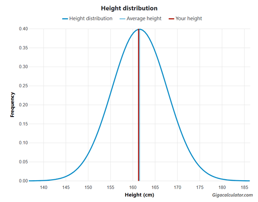 When manufacturers make skis for women and decide on sizing, they think about this, the height distribution of their women customers: