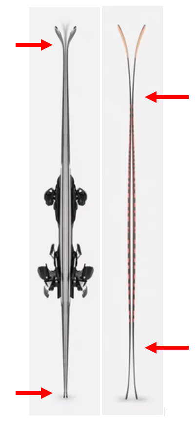 Every ski has an “effective edge,” which is the portion of the ski that’s in contact with the snow. The effective edge has the biggest impact on how long a ski feels.