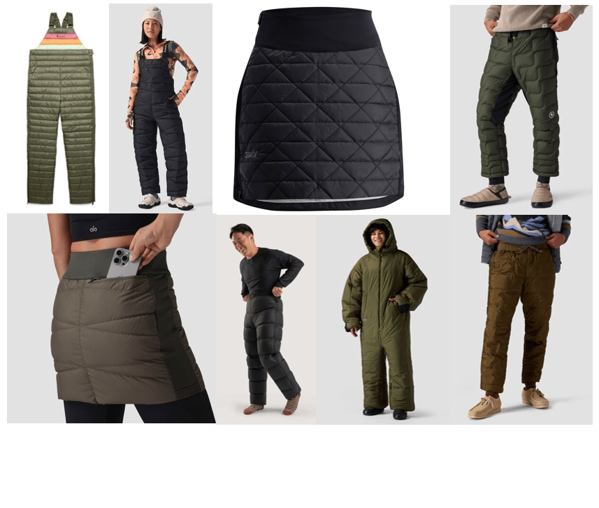 - For more casual activities, non-zip puffer pants and overalls are great for winter bonfires and apres ski. For overalls, get the Backcountry Stansbury for women or the Cotopaxi Fuego for men. For down pants, the Backcountry Waas for men and women, or for a budget-friendly option, the unisex Eddie Bauer CirrusLite Jogger trades down for a more conservative price. Synthetics? Stoic Puffer Jogger for men and women.