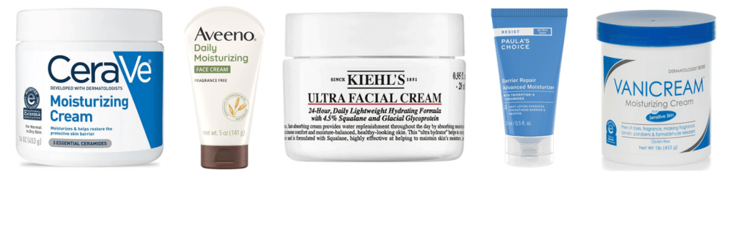 Finish off with a thick moisturizer. A thick moisturizer or night cream will check all 3 types of hydrating skincare ingredients: humectants to deliver moisture, emollients for smoothing, and occlusives to seal everything in. I live and die by the Cerave Moisturizing Cream, but the skincare aisle is teeming with good options.