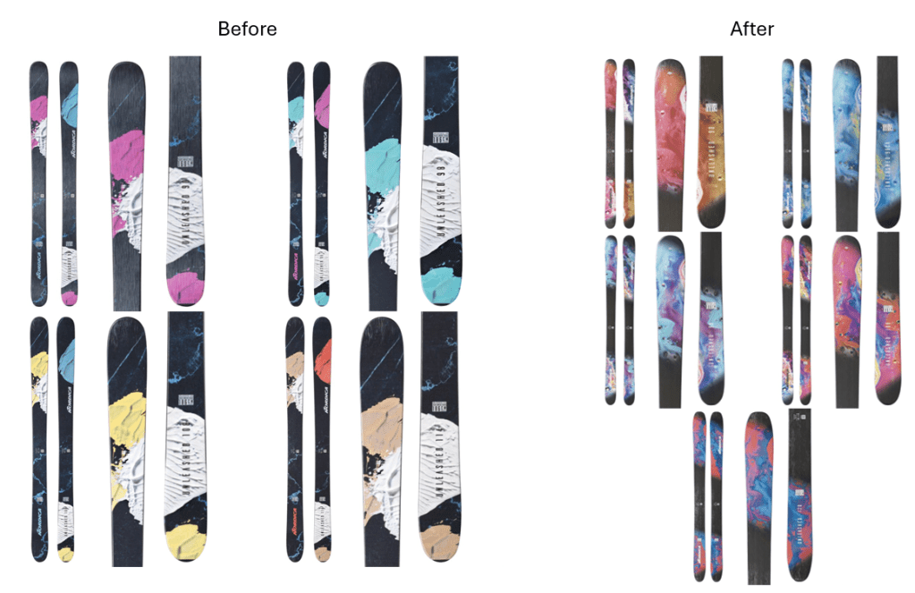Winner: Coalition Snow came out on top with 90% approval. They’re a repeat champion. No surprises since the colors are so dialed to women’s fashion tastes. The Fall-Winter 2025 fashion palettes featured “Neon Flare” – that punchy, poppy, neon coral – especially in unexpected combinations with soft, cosmetic pink and beige. Spring-Summer 2026 palettes feature the “jelly brights” like Mint Jelly, Peach Jelly, and Frosted Grape. They’re a continuation of recent pastel trends, but favoring bolder interpretations over softer, muted pastels. It’s such a special skill set to predict what will resonate with customers 6-18 months in the future. It’s a complicated blend of math-y business trends, emotional forecasting, and creativity. Add on the skills needed to execute that framework into visual artwork, and it’s that much more impressive to see in a small, entrepreneurial team. Seriously, below the skis, I’ve got a handful of forecasted color trends from winter and spring that match up with the line perfectly.